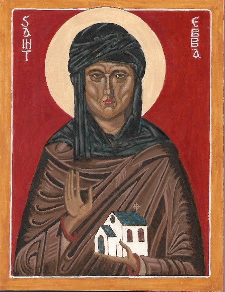 St Ebba the Elder, sister to St Oswald, the remains of whose chapel can still be seen at Ebb’s Neuk, Beadnell. She is portrayed holding the double monastery of Coldingham, now in Scotland, but then in the Kingdom of Northumbria, of which she later became abbess. She is remembered in the dedication of Beadnell parish church. She is also associated with Ebchester and St. Abbs Head