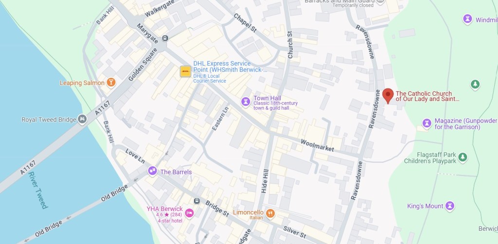 The Divine Liturgy is normally served in English, following the New Style Calendar dates, on the first Sunday of the month at 11am, (but please always check beforehand), where we are guests in the RC Church of Our Lady and St Cuthbert, 64 Ravensdowne, Berwick upon Tweed, TD15 1DQ.